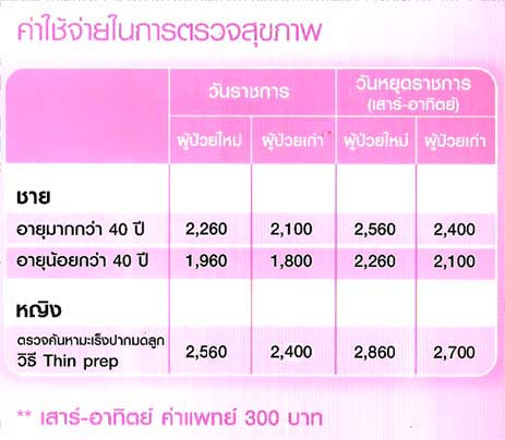 - ส่งแบบฟอร์มไม่ได้รับผลการตรวจสุขภาพ ซึ่งท่านจะได้รับหลังจากพบแพทย์แล้ว โดยส่งไปที่ สถาบันมะเร็งแห่งชาติ คลินิคตรวจสุขภาพ ติดแสตมป์ 3 บาท