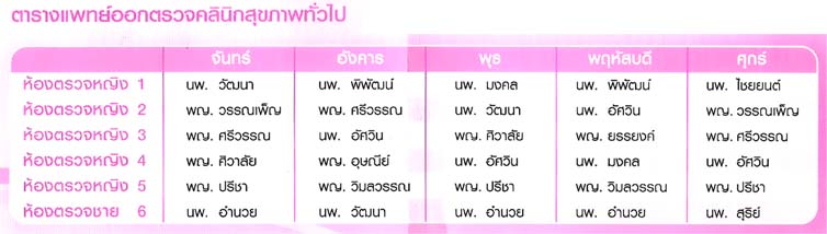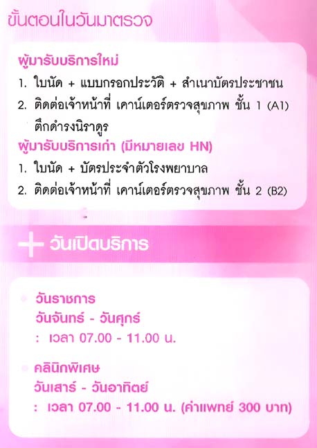 - โทรศัพท์นัดตรวจ 02-3547025 ต่อ 1203 เวลา 14.00-16.00 น.